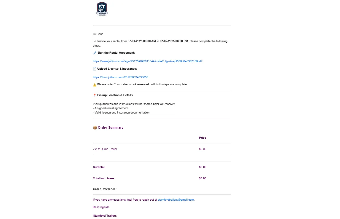 Once your booking is placed, you’ll get a link to digitally sign your rental agreement.