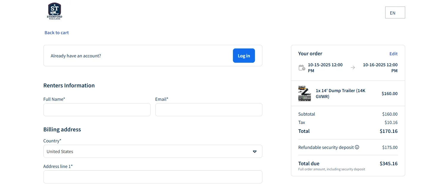 You’ll see the deposit amount, rental total, and can check out securely in minutes.